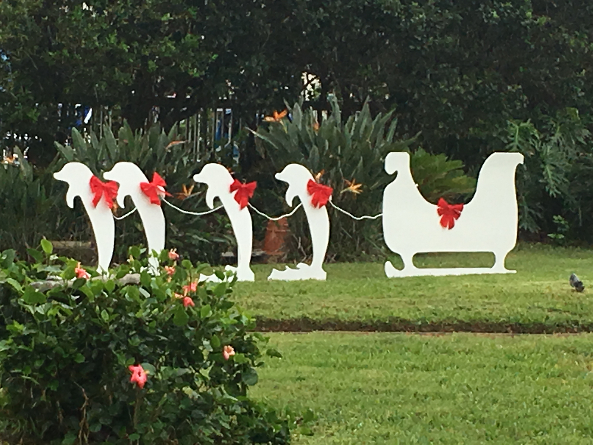 The oceanfront grounds glow with festive lights and beachy holiday touches.